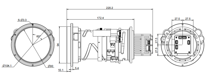 Φ110 (φλάντζα) × 221mm, φ120 (μέγιστη συνολική διάσταση) |